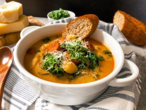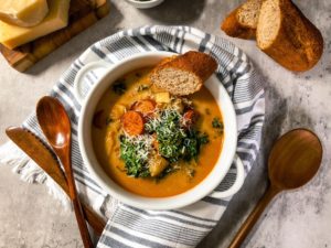 I love serving this smoke sausage, kale and potato soup with some hearty wheat bread and lots of shredded parmesan. It is hearty, comforting and I can’t wait for you to try this soup.