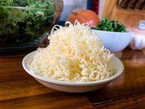 While you are waiting for the soup to begin simmering, finely shred about 1/4 cup of parmesan. You can use pre-shredded parmesan, but it will not incorporate as well as freshly shredded parmesan will.
