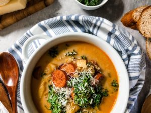 Sometimes you just need a bowl of soup. Maybe the weather is chilly, maybe you aren’t feeling fabulous or maybe you just want a delicious bowl of soup… whatever your reason may happen to be, this smoked sausage, kale and potato soup is exactly what you need.