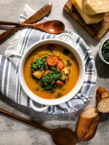 With beautiful smokey flavors from the andouille sausage, earthiness from the kale, hearty texture from the potatoes and a warmly spiced broth, this soup is like a big bear hug in a bowl.