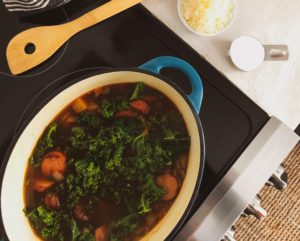 Doesn’t this soup look inviting? The warm, spicy flavors in the broth are way at the top of my list and the texture of the crispy sausage, the kale and those tender potatoes come together is a really delicious way.