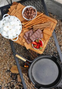 Now if you combine those s’mores elements in a cast iron skillet over a campfire, not only do you get to stay clean during the entire process, but you also get to share the deliciousness with you friends.