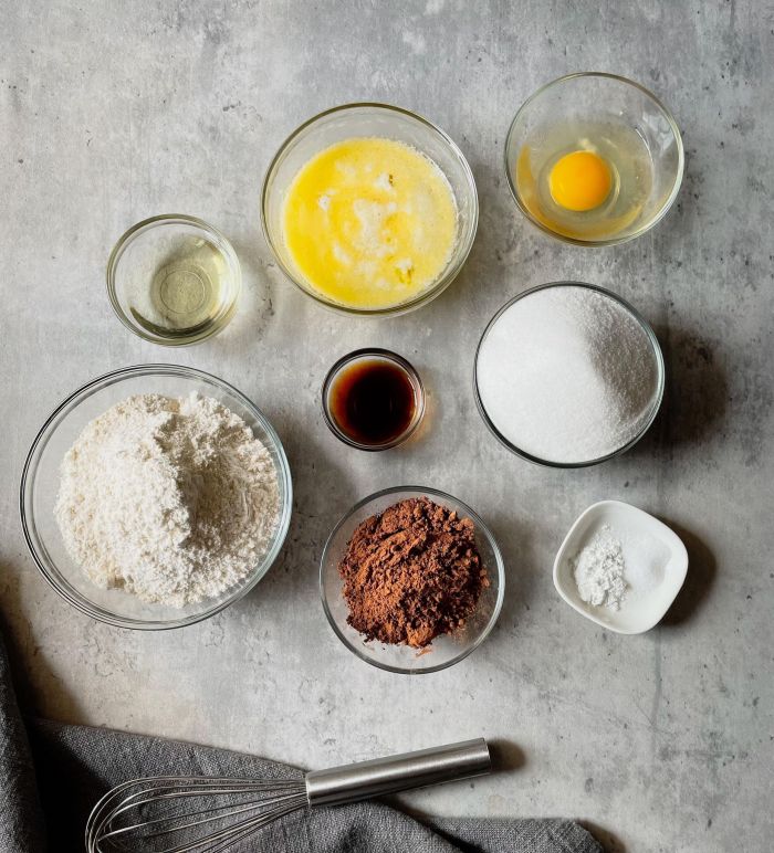 - Make the chocolate cookie layer by whisking 1/2 cup of melted butter, 2 tablespoons of vegetable oil and 1 cup of granulated sugar until combined. Add 1 large egg and 1 teaspoon of vanilla extract and whisk until creamy. Add 1/3 cup of natural unsweetened cocoa powder, 1 1/4 cups of all purpose flour, 1/2 teaspoon of baking powder and 1/4 teaspoon of salt and mix until just combined