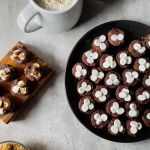 - Add 1 rounded teaspoon of the chocolate cookie batter and gently press with a damp finger
