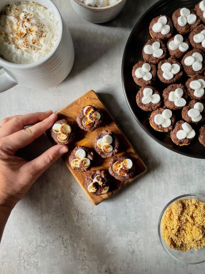 If you want to get real campfire authentic with your s’more cookies then give the marshmallows a little toast with a chefs torch. It adds a great look and an extra layer of flavor you didn’t know you were missing.