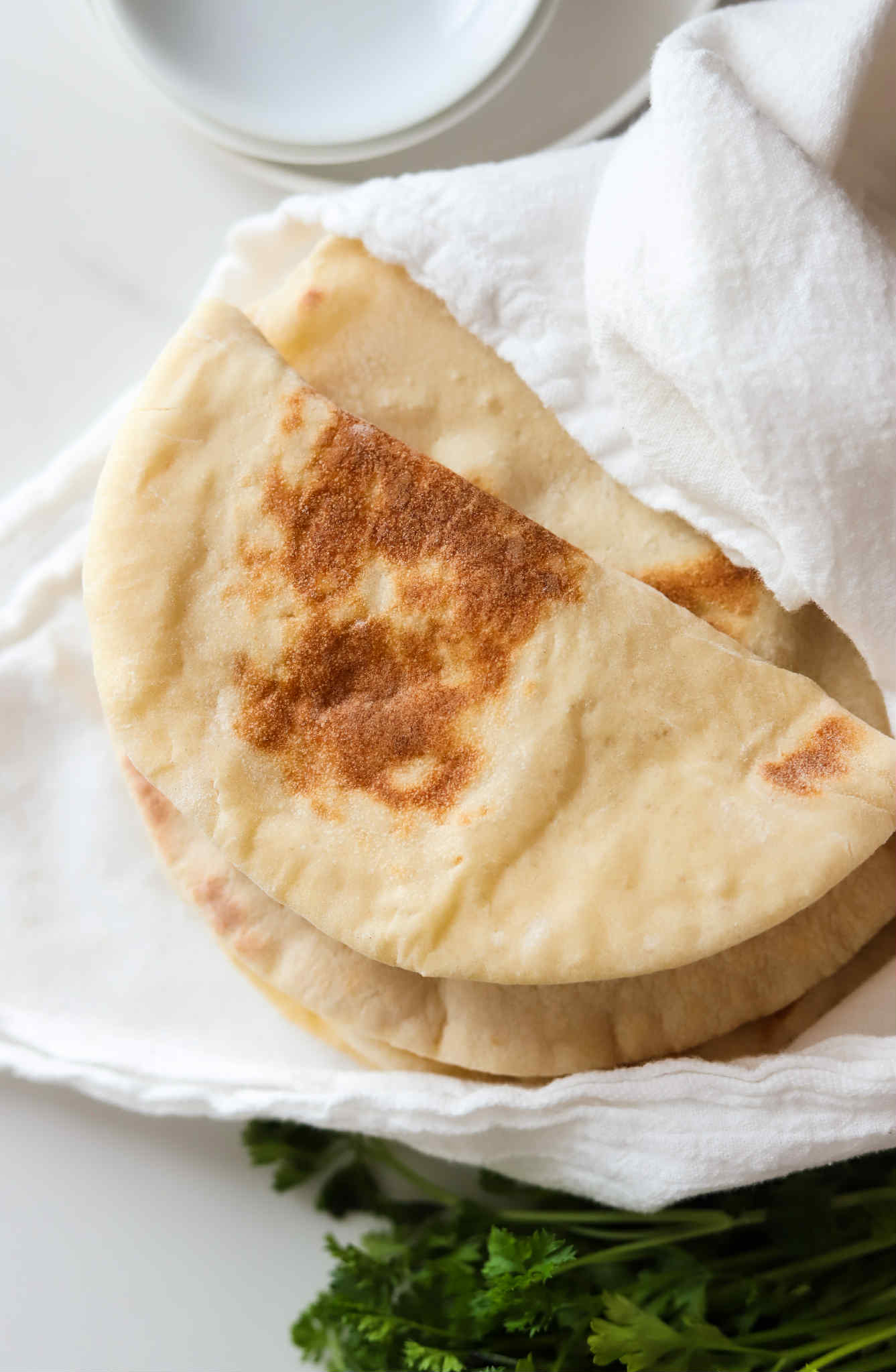 - Stack the cooked flatbreads on top of each other and keep them wrapped in a towel until ready to serve