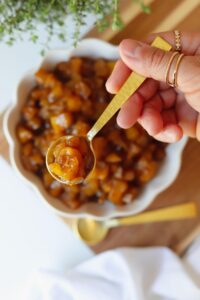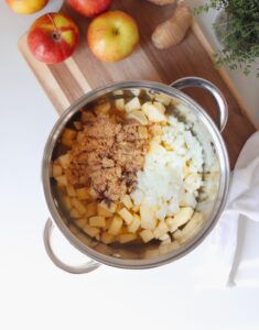 Chutneys are really easy to bring together. We are simply going to combine everything in a pot and simmer until tender and caramelized. So, being by gathering all of your ingredients.