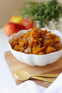 Todays chutney is made with spiced apples, but you can make chutneys with everything from tomatoes to mangos depending on what they will be paired with.