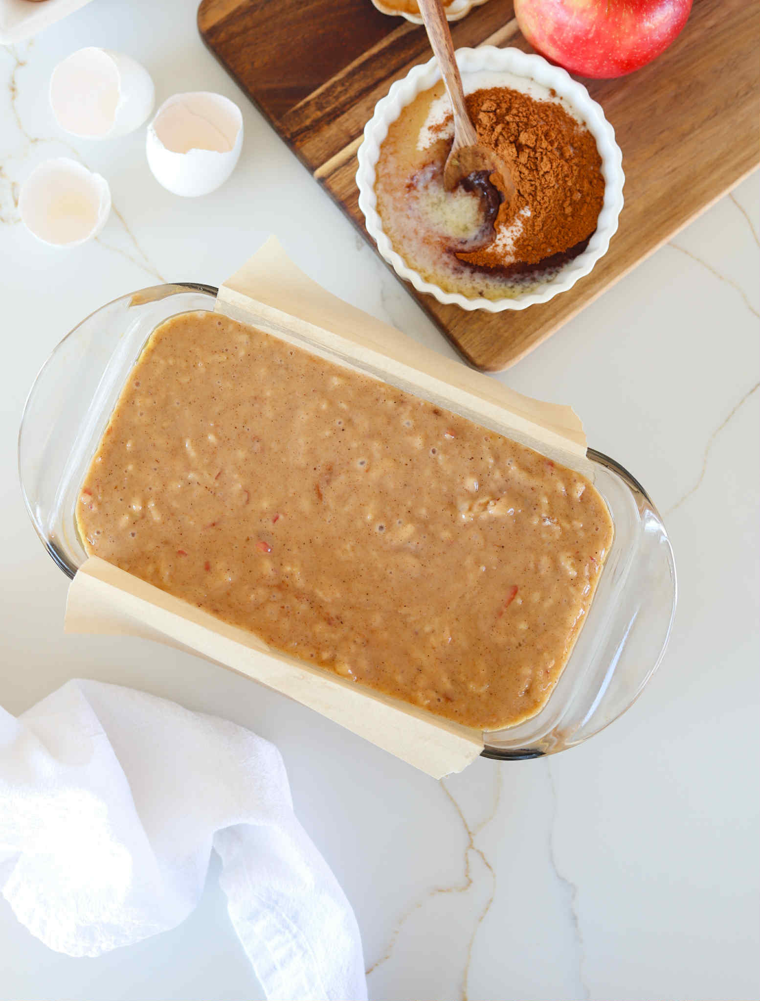- Transfer the batter into the prepped loaf pan