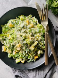 Add some of the dressing, give the salad a good toss and then add the rest, if needed. I always add all of this dressing, but play with it and see what you like. If you want a little bit of cheese (and who doesn’t?) sprinkle your salad with a little grated parmesan and enjoy!