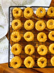 - Transfer the baked doughnuts onto a cooling rack to cool completely before frosting