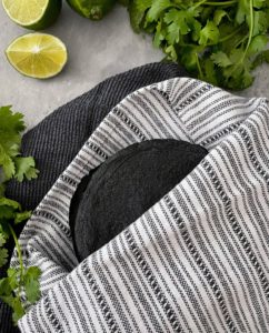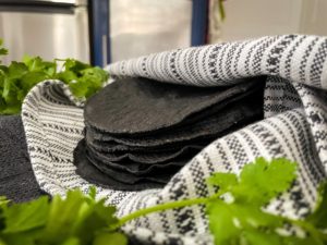 Now that the tortillas are all cooked, let’s take a moment to talk about how beautiful they are. That bold inky black color is everything! Most of them will have a shiny side and a more matte finished side (depending on which side was cooked first) and I can’t decide which side I like better. They are both simply fabulous…