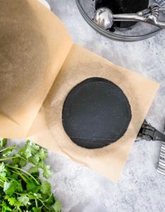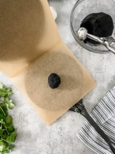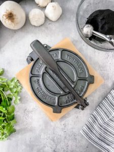 So, you have a few options. If you have a tortilla press, this is the easiest way. Simply fold a sheet of parchment paper in half or line both halves with plastic wrap and let the press do the rest of the work! If you are trying to decide on a tortilla press, I highly recommend Victoria Cookware’s cast iron tortilla press. Its heavy duty and I have loved mine for a long time now!