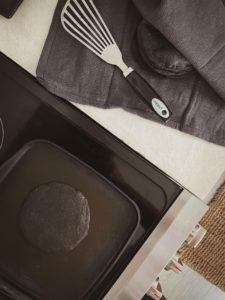 Once you are happy with the consistency of the dough, cover the bowl with a damp towel and let it rest for 15 minutes at room temperature. This is when I place a flat griddle or wide skillet on my stovetop. When I have a few minutes of resting time left, I turn my stovetop to medium high and let the griddle get really warm.