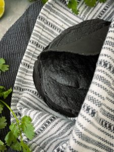 If you are unfamiliar with squid ink, don’t be nervous! It is not difficult to work with and adds only a subtly salty umami-like flavor. When you first open a jar of squid ink, you will smell a strong seafood scent, but it only takes 1 tablespoon of squid ink to create an entire batch of these beautifully black tortillas and this scent is highly diluted throughout the cooking process.
