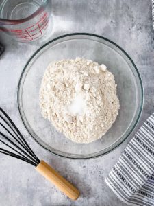 Start by whisking 1 3/4 cups of masa harina with 1/2 teaspoon of salt in a large bowl.