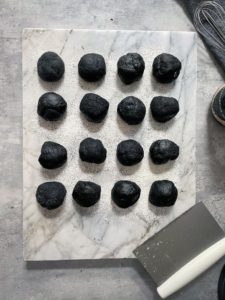 Once the dough is divided into portions, roll each portion into a round ball.