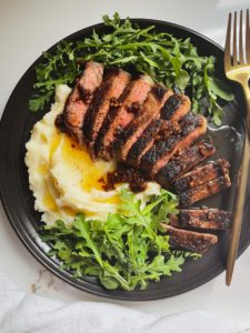 So, your steak is seared beautifully and drizzled in the most incredibly delicious sauce, but if you are at a loss for what to pair it with, here are a few of my favorite side dishes for this steak dinner…