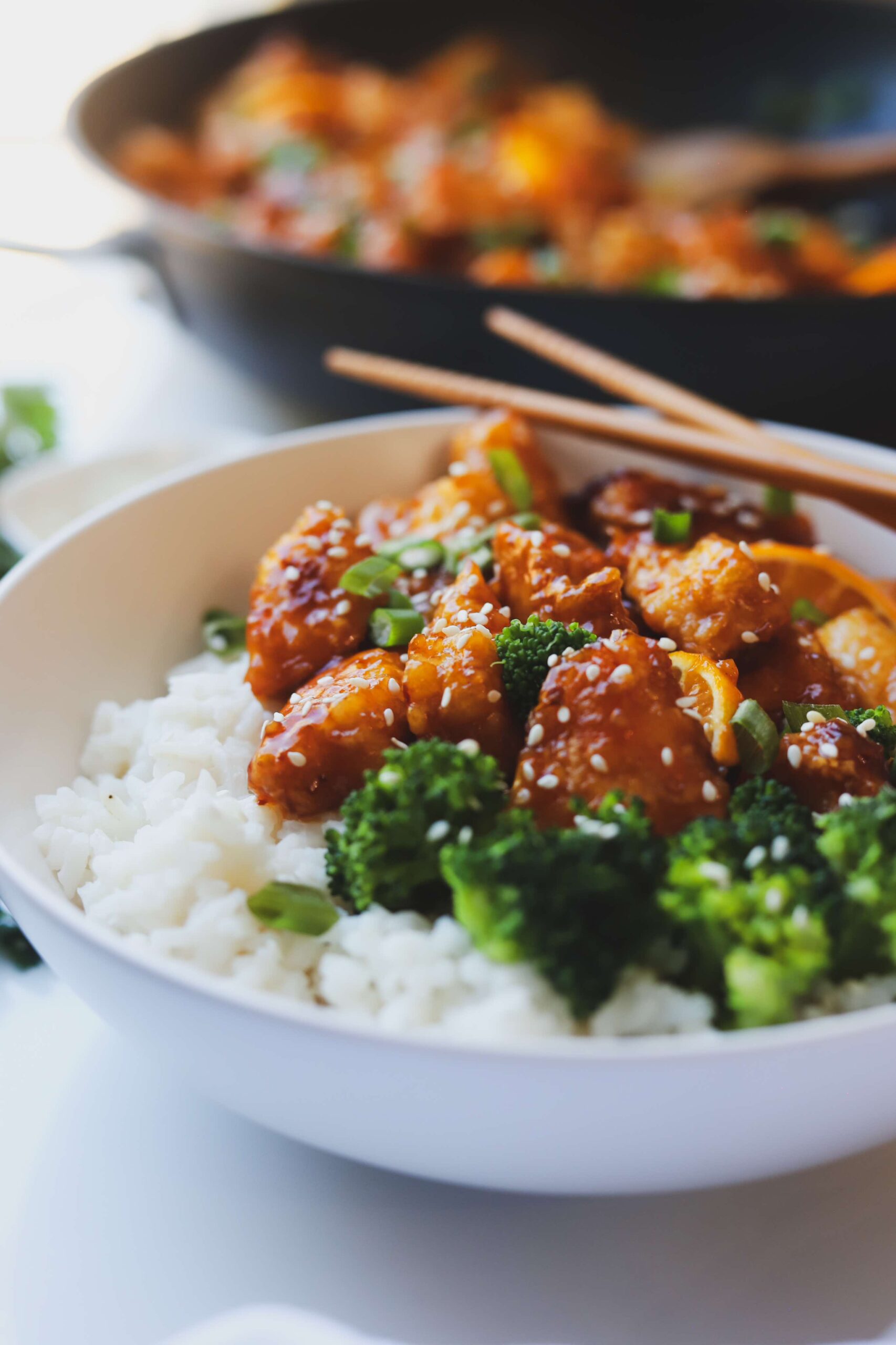Making your favorite take-out dishes at home is actually quite easy and allows you to control the flavors and spice levels and keep the additives out. Today, we are making sticky honey orange chicken, but you can also make general tso’s, bibimbap or yakisoba right in your own kitchen any time the mood strikes.