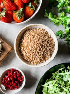 In addition to the benefits of farro, the strawberries are loaded with antioxidants, the walnuts bring Omega-3’s and arugula contains glucosinolates, which are believed to help protect our cells from cancer. With all of the delicious flavors and health benefits of this beautiful salad, I have just one question for you… why aren’t you eating one right now?