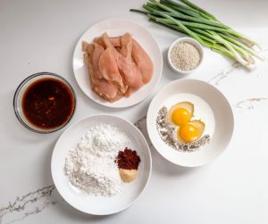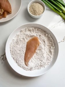 Today, I am using boneless skinless chicken tender strips, but you can use any cuts of chicken, bone-in or out and even skin on chicken breasts or thighs. This glaze will stick onto anything that you can coat and crisped up, so have fun with it!