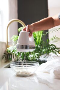 Use a stiff whisk and your strongest whisking arm or an electric hand mixer to whip everything together until super creamy.
