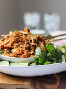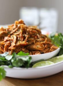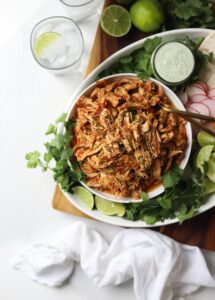The flavors are warm, comforting and just a little bit spicy. Whether you add your tinga de pollo into tortillas, over nachos or a tostada or over a big bed of greens, you are going to love it.