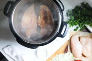 There are several ways that you can make tinga de pollo. I have been making it in a pressure cooker and love how quickly everything comes together, but you can also bring it together on a stovetop in a skillet or simmered in the oven in dutch oven. The results all turn out the same, so use what you have on hand.