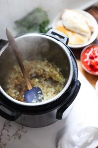 • Add the diced onion and finely minced garlic and cook until softened (5-7 minutes)