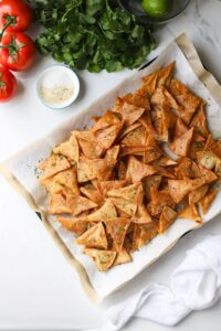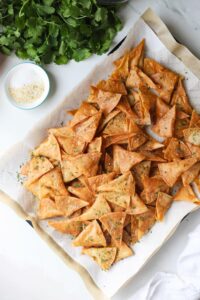 Letting the chips chill on some paper towels will help soak up any excess oil leaving them wonderfully crisp. If you are making a big batch, I recommend using a few baking sheets to let the chips spread out a bit. After a few minutes, you can gather the chips up and add a little extra salt if you like things extra salty.