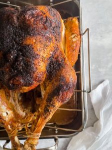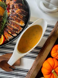 If you are roasting a turkey dry or lightly seasoned, then you can add some addition fresh or dried herbs, garlic powder, onion powder, poultry seasoning, a spice blend or your favorite seasoned salt to taste. I recommend adding a small pinch of your chosen spices, whisk to combine and do a quick taste test. Just remember, you can always add more seasoning, but you can’t take it out if you add too much. Season slowly in layers and reach for spices and herbs instead of salt.