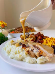 If you are roasting a turkey for your holiday dinner spread, you need to have a great gravy to serve with it and that can be done in just a few minutes with the pan drippings from your turkey and 3 simple pantry staples.