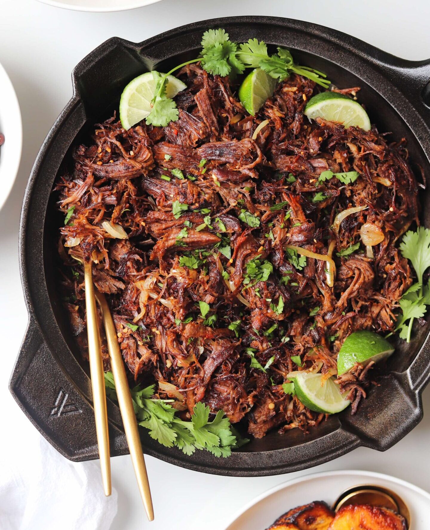 It is crispy, it is tender, it is full of bright citrus, sweet garlic and the perfect amount of seasoning. This vaca frita is a delicious canvas to pair with so many things. Traditionally it is served with black beans and white rice, but it is also fabulous in tortillas with some pico or over a bed of greens with some taco ranch dressing.