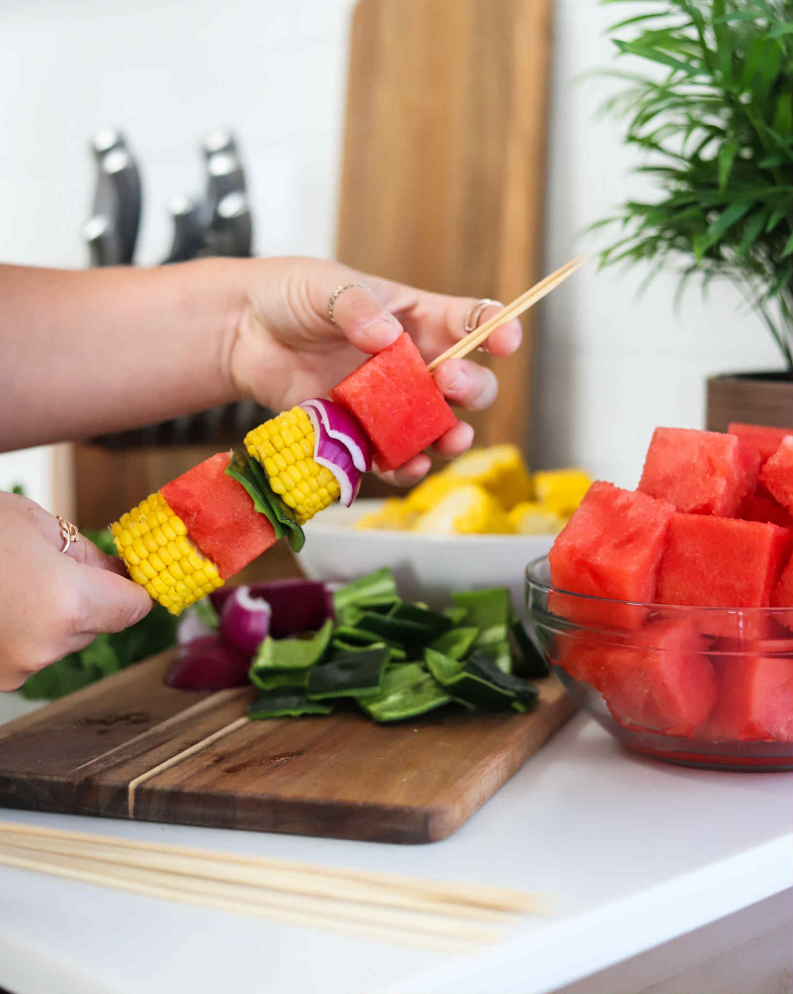 Watermelon Sweet Corn & Poblano Grilled Skewers