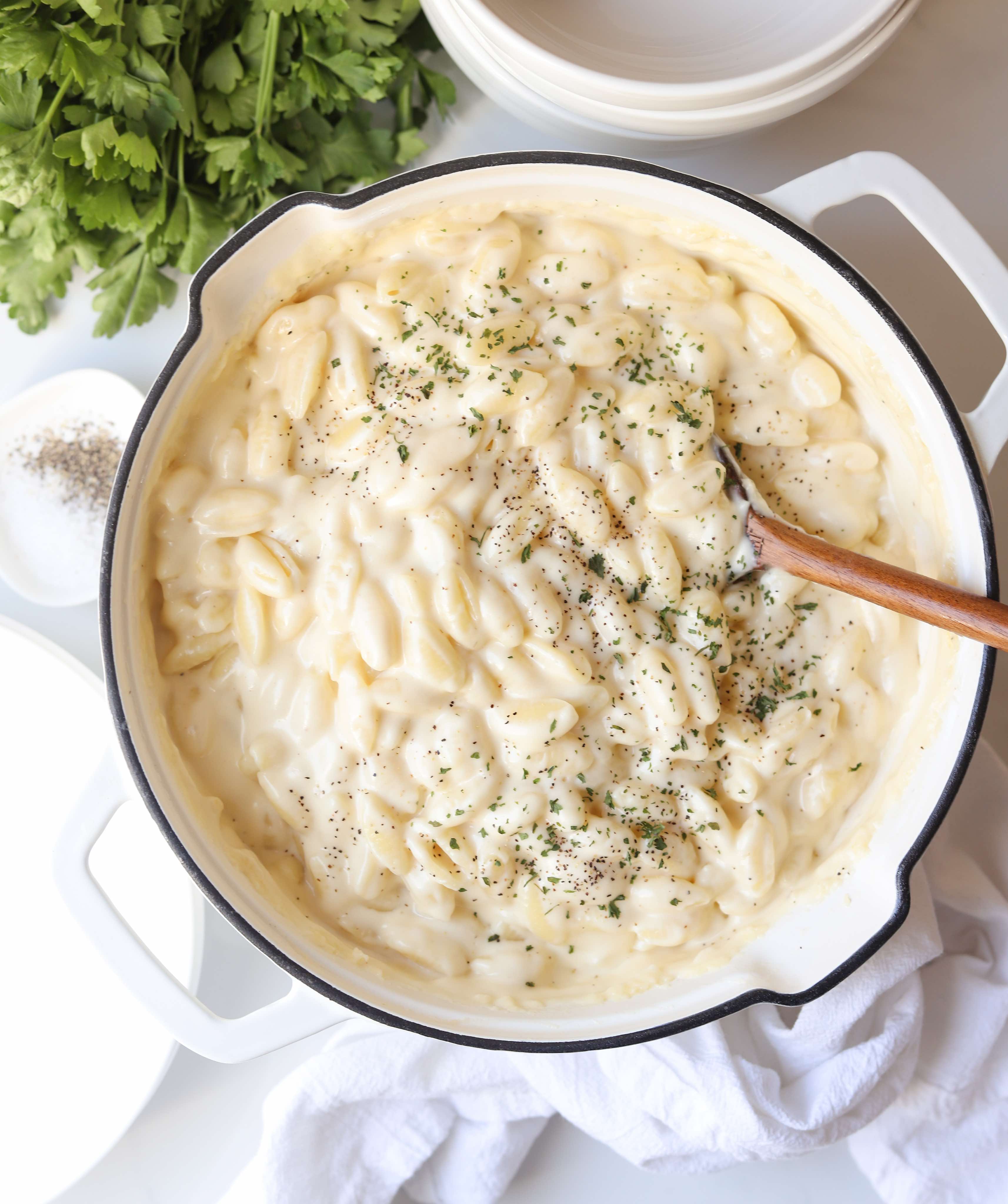 - Transfer the pot off of the heat and enjoy immediately or allow the pasta to rest for 10 minutes if a thicker consistency is preferred