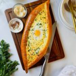 Once the egg is done to your liking, transfer the khachapuri onto plates and top with a tablespoon of butter