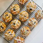 Flavorful fruit filled muffins with a sweet cream cheese filling, a buttery crumb topping and a bright lemon glaze.