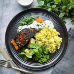 Once it easily releases from the pan, flip the salmon and cook on the skin side for 2-3 minutes