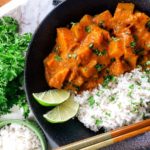 Serve with rice (optional) and garnish with finely chopped cilantro and lime wedges