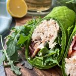 Assemble each wrap by adding 1 cup of the shredded chicken mixture, some of the crumbled bacon and arugula into the middle of the wrap