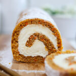 While the cake is baking, dust a large kitchen towel with confectioners sugar and as soon as the cake is fully baked, carefully invert it onto the towel and roll the hot cake tightly starting at the short end
