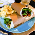 Assembled wraps by adding ranch dressing, chicken, bacon, cheese, tomatoes and lettuce and wrapping as you would a burrito