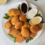 Flip the nuggets and spray with non-stick spray or brush with melted butter and return to a 375 degree oven for another 8-10 minutes or until the nuggets are crisp on both sides