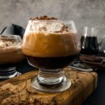Top with whipped cream and garnish with chocolate shavings and espresso powder (optional)