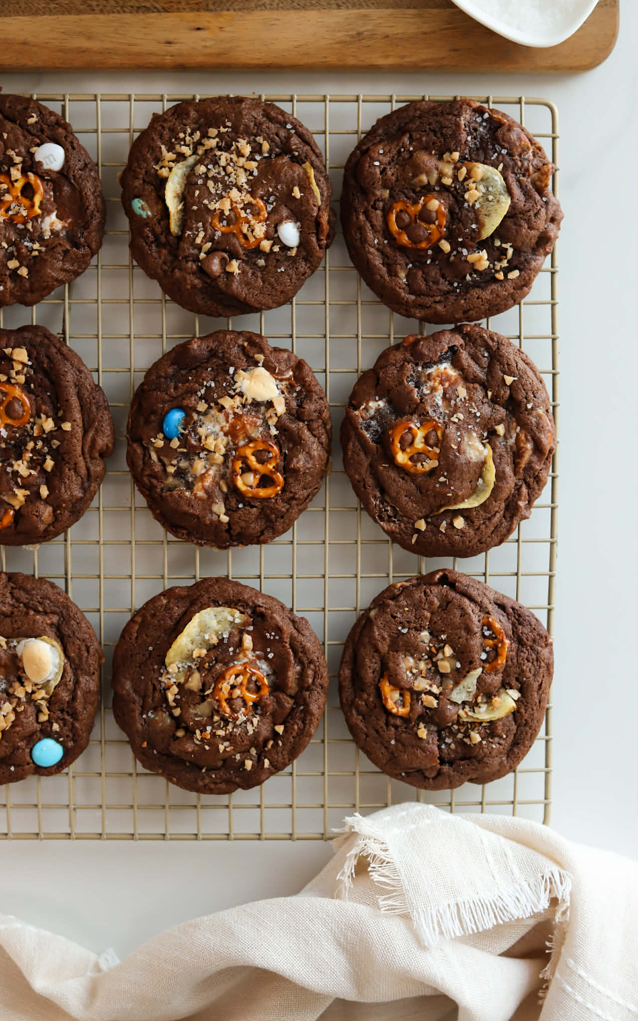 Transfer the cookies onto a cooling rack and sprinkle with sea salt while they are still hot