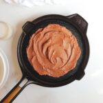 While the cake is cooling, make the frosting by whipping 8 tablespoons of room temperature butter with 2 tablespoons of heavy cream, 3 tablespoons of natural unsweetened cocoa powder, 1 teaspoon of vanilla extract and a pinch of salt. Slowly add 2-3 cups of confectioners sugar until you have the sweetness and consistency you want. Add additional heavy cream to thin, if necessary
