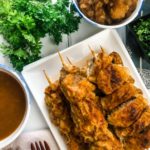 Place the cooked city chicken onto plates and top with some pan gravy