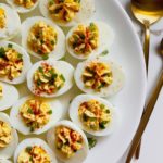 While the eggs cool, combine 1/3 cup of mayonnaise, 1 tablespoon of softened butter, 1 tablespoon of dijon mustard, 1 tablespoon of fresh lemon juice or pickle juice, 1 teaspoon of honey (or sugar), 1/2 teaspoon of garlic powder, 1/2 teaspoon of onion powder, 1/4 teaspoon of salt and 1/4 teaspoon of black pepper in a small dish and set aside for now
