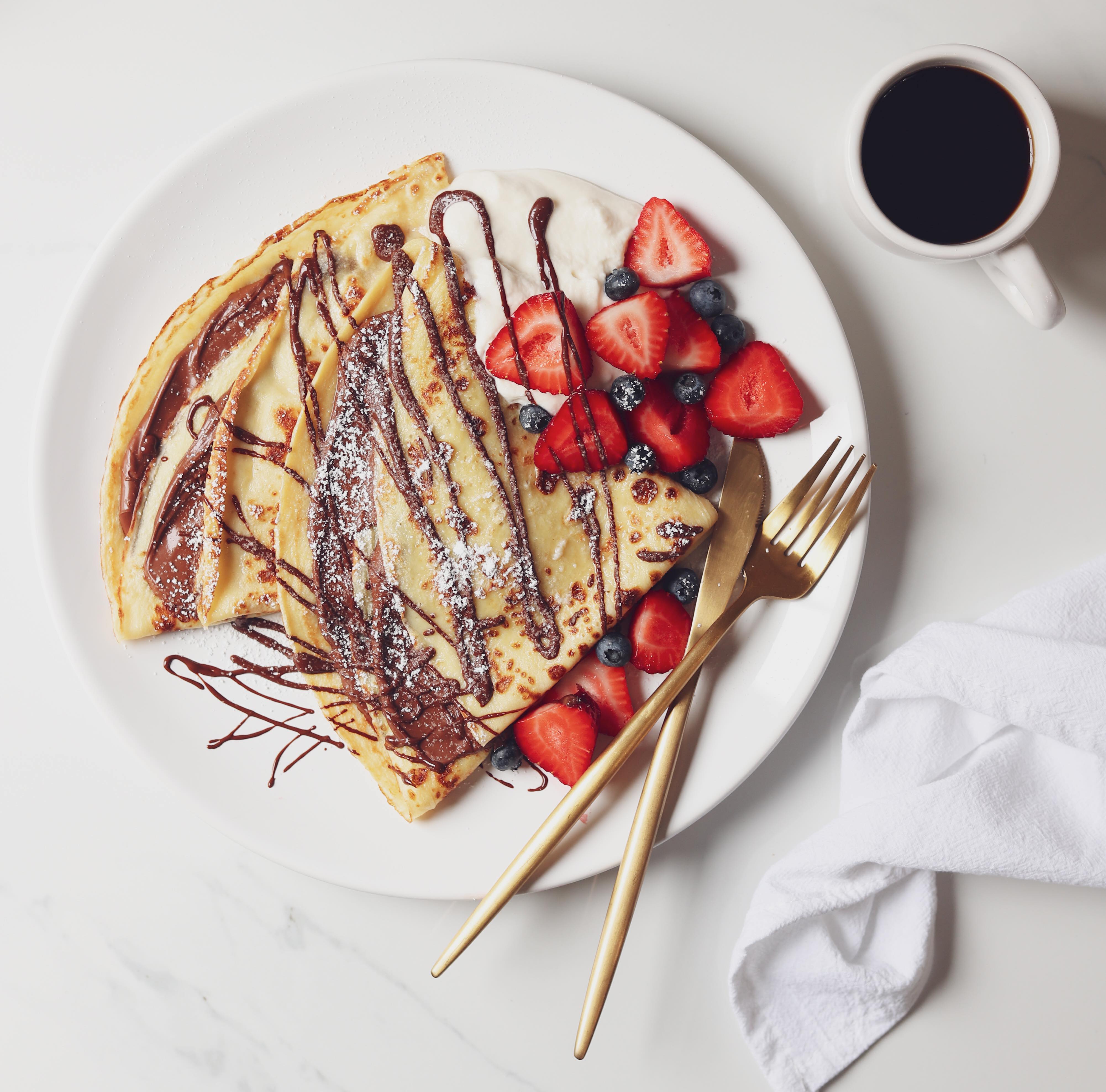 Top the folded crepe with berries and enjoy!