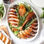 Cover the turkey loosely with foil, if necessary, to prevent over browning of the skin